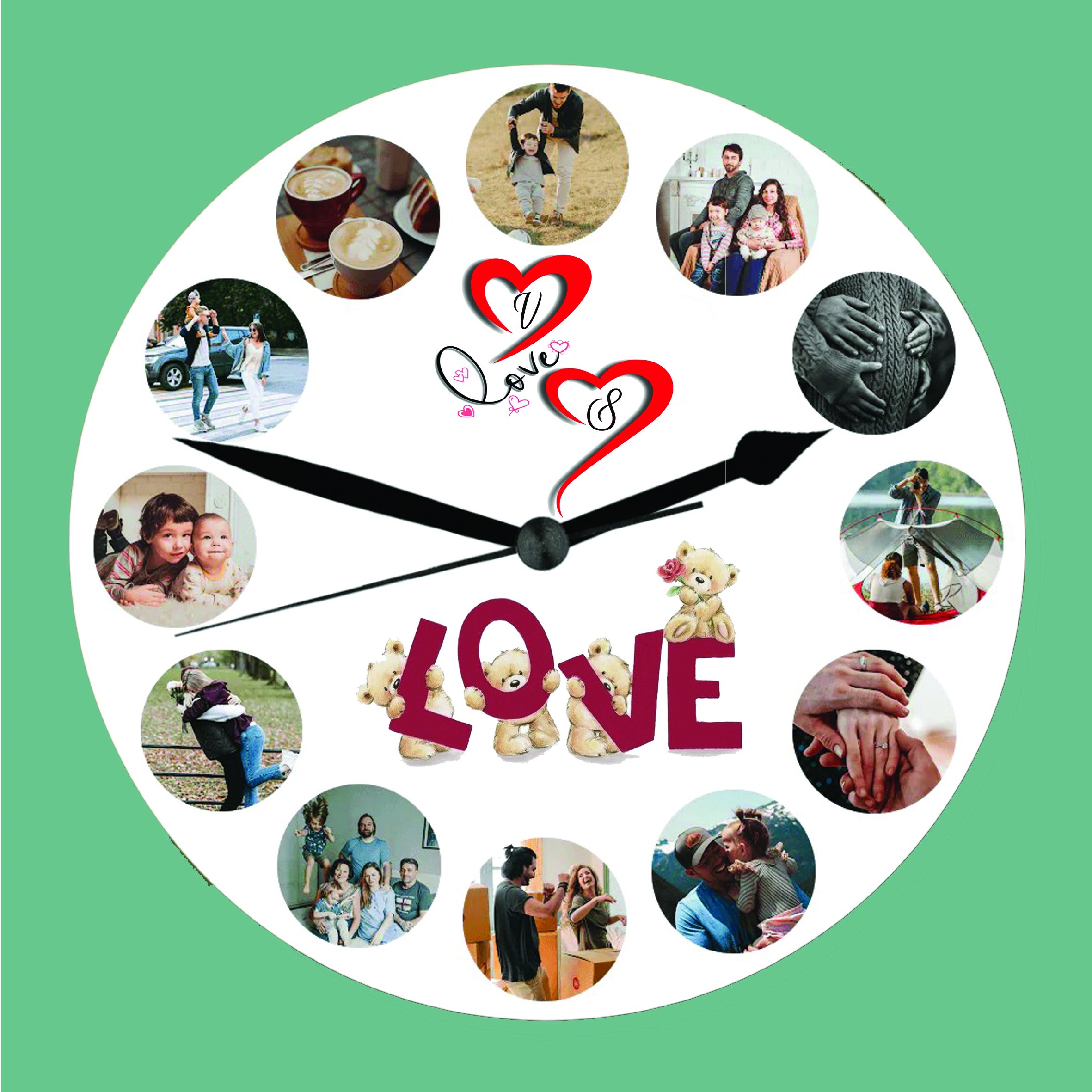 Ceas personalizat cu 12 poze model iubire